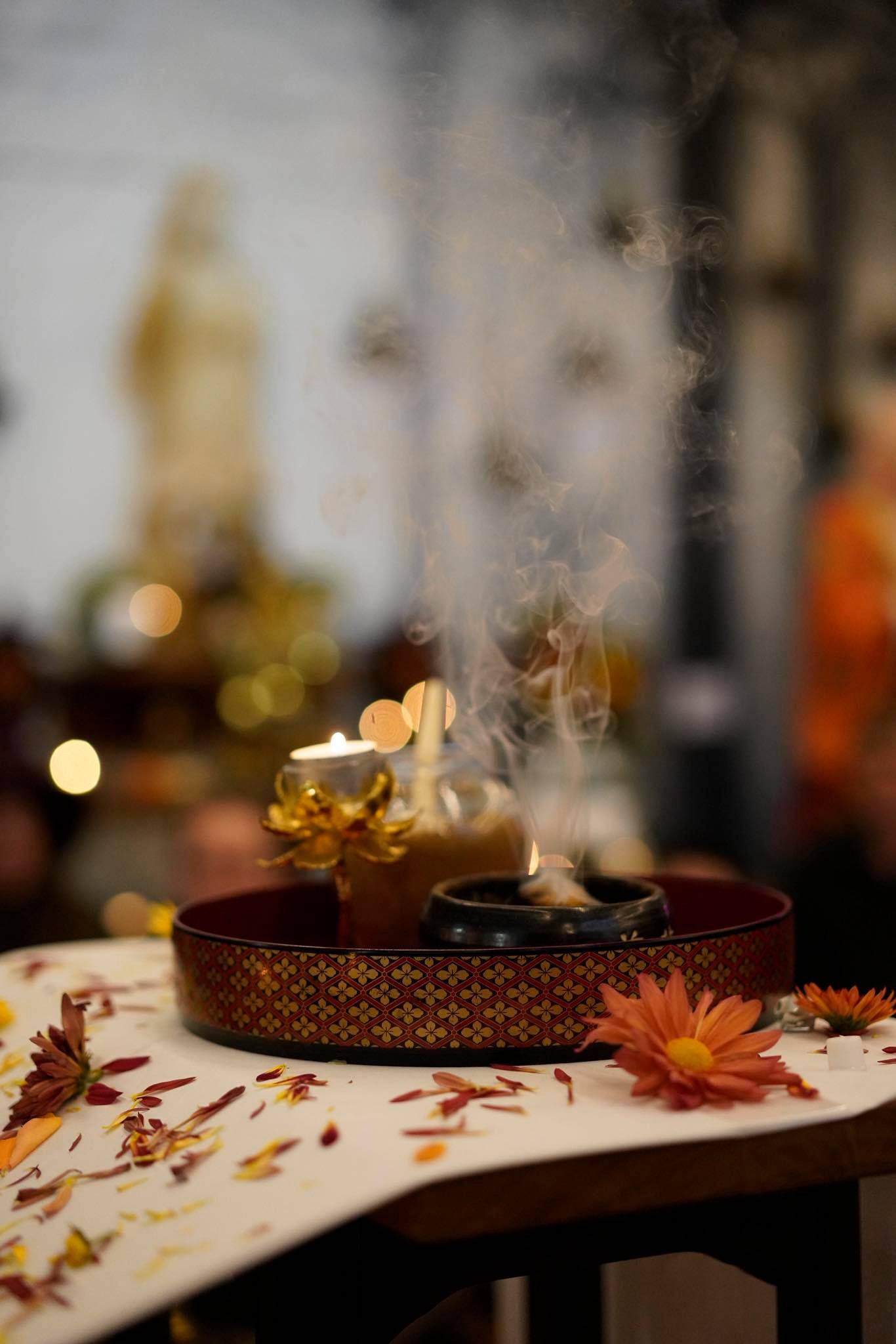 A Night to RememberOn Saturday, November 1, Urban Dharma celebrated our first Remembering & Renewing evening, held in conjunction with the observance of Allhallowtide (“Every Holy Season”—All Hallows Eve, All Saints Day, and All Souls Day) in the Christian calendar. That evening, Dr. Lye led a short service in remembrance of all our dearly departed in front of a beautiful altar to welcome and make offerings to our spiritual and temporal ancestors. He also spoke on ancestral healing and reconciliation, relating it to the East Asian Buddhist tradition of the Ullambana Festival (or “Ghost Festival”), when familial ancestors are remembered and celebrated, and the non-familial, or “foreign,” dead are cared for during the month-long season (usually around August/September). For Urban Dharma, this marks another step in our slowly evolving way of “being Buddhist” in a new social and cultural context. In Remembering & Renewing, we draw from a rich field of traditions—Allhallowtide (and its Mexican expression, Día de los Muertos), Ullambana, Samhain, and others—to create a heartfelt annual gathering during this season of lengthening nights and falling temperatures. Beyond the service, as with celebrations of Halloween, Día de los Muertos, and the Ghost Festival, our event was also festive and fun. We hosted a night market with a live band. About 15 local vendors offered handmade crafts and snacks, and a silent auction helped raise funds for UD. Members of the UD Board also ran a sustaining membership drive to encourage intentional commitment and investment in Urban Dharma and the programs we offer freely to all. Want to add a petal to the lotus?Sustaining Members provide dependable monthly support for temple operations and teacher visits. This generous form of giving supports programs offered on a dana basis, letting participants value teachings on their own terms.