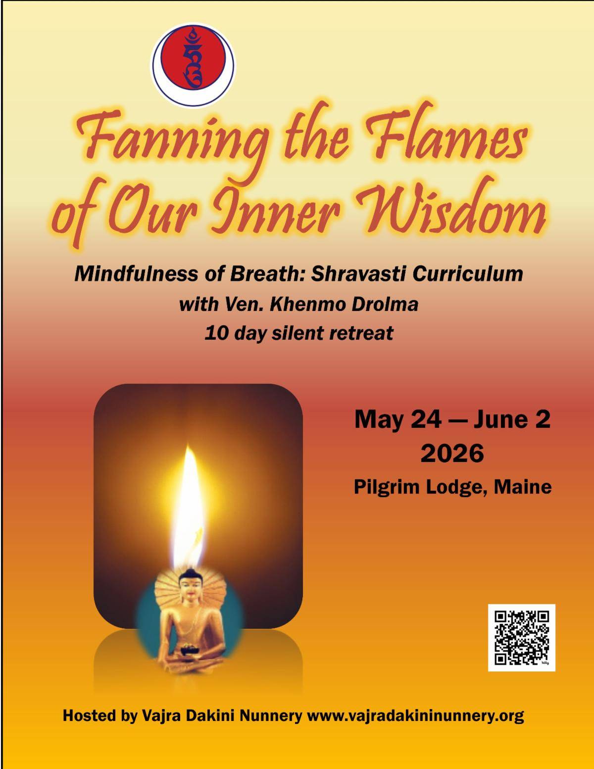 At the Hermitage: The Buddha is Seated!The Buddha statue that arrived at the hermitage being built in Green Mountain, NC has been installed. In this short video, Dr. Lye shares some wisdom on the image on the Buddha's image, which is "meaningful to behold:" "It has the power to pacify our suffering, our discontent, simply by gazing on it. It's meaningful not because of the physical qualities, but because of what the physical qualities are pointing to." Vajra Dakini Nunnery 2026 Shravasti RetreatWith Ven. Khenmo DrolmaOur friends at Vajra Dakini Nunnery are pleased to announce their third Ten Day Shravasti Retreat, to be held at Pilgrim Lodge in Maine, May 24–June 2, 2026. The course was designed by His Holiness Drikung Kyabgon Chetsang Rinpoche specifically for 21st century practitioners, and is considered the new Drikung foundational practice (Ngondro) for all meditators: “Many practitioners have attended advanced teachings on Dzogchen or Mahamudra without being able to meditate with a single-pointed mind for 10 or even 5 minutes. Meditation is not easy. You should start with calm-abiding to stabilize your mind and, if possible, attend a Shravasti Meditation retreat, not only to receive teachings, but to whole- heartedly engage in meditation practice and increase your ability to stabilize your mind. The Shravasti Meditation is an integrated meditation approach that relies directly on the Buddha’s words as the source of instruction. It is based on the Anapanasati Sutra (Discourse on Mindfulness of Breathing).”